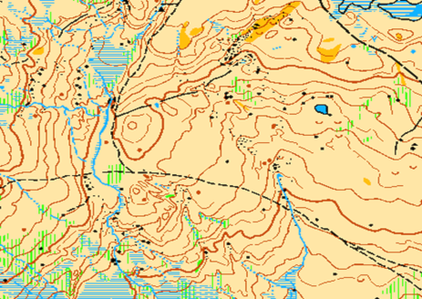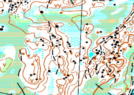 Store deler av terrenget ligger over tregrensen, som betyr god sikt og god løpbarhet. Unntaket er enkelte grønnskraverte vierområder som enten må passerer eller løpes rundt. Til tross for åpent lende er orienteringen tidvis vanskelig på grunn av skråli eller mange formasjoner. Nederste del av kartet er furu/bjørkeskog ned mot arena med mer varierende løpbarhet.